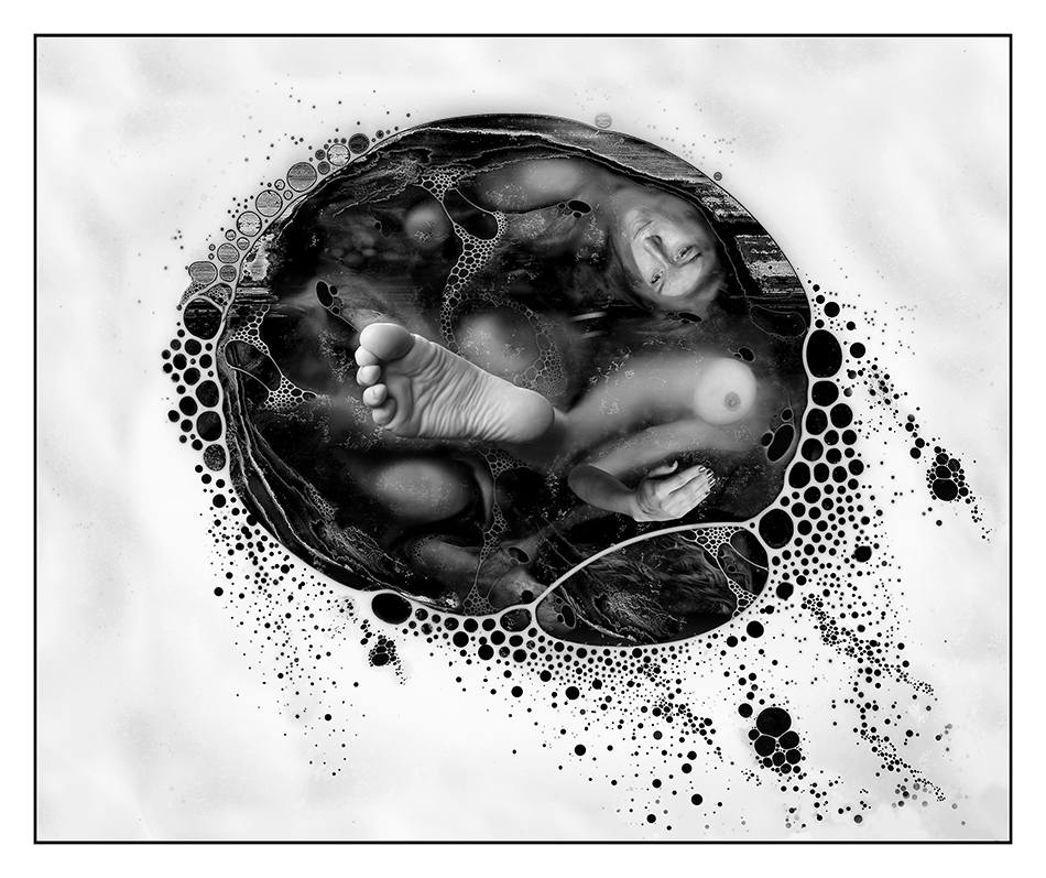 Technically, the photograph was nothing more than scanned water-based paint montaged with a lens-based image. Conceptually, I think of this piece as having to do with origin, emergence, transformation, rebirth, or the process of becoming whole. These themes run throughout all of my recent work, which for three years has been exclusively digital photography.